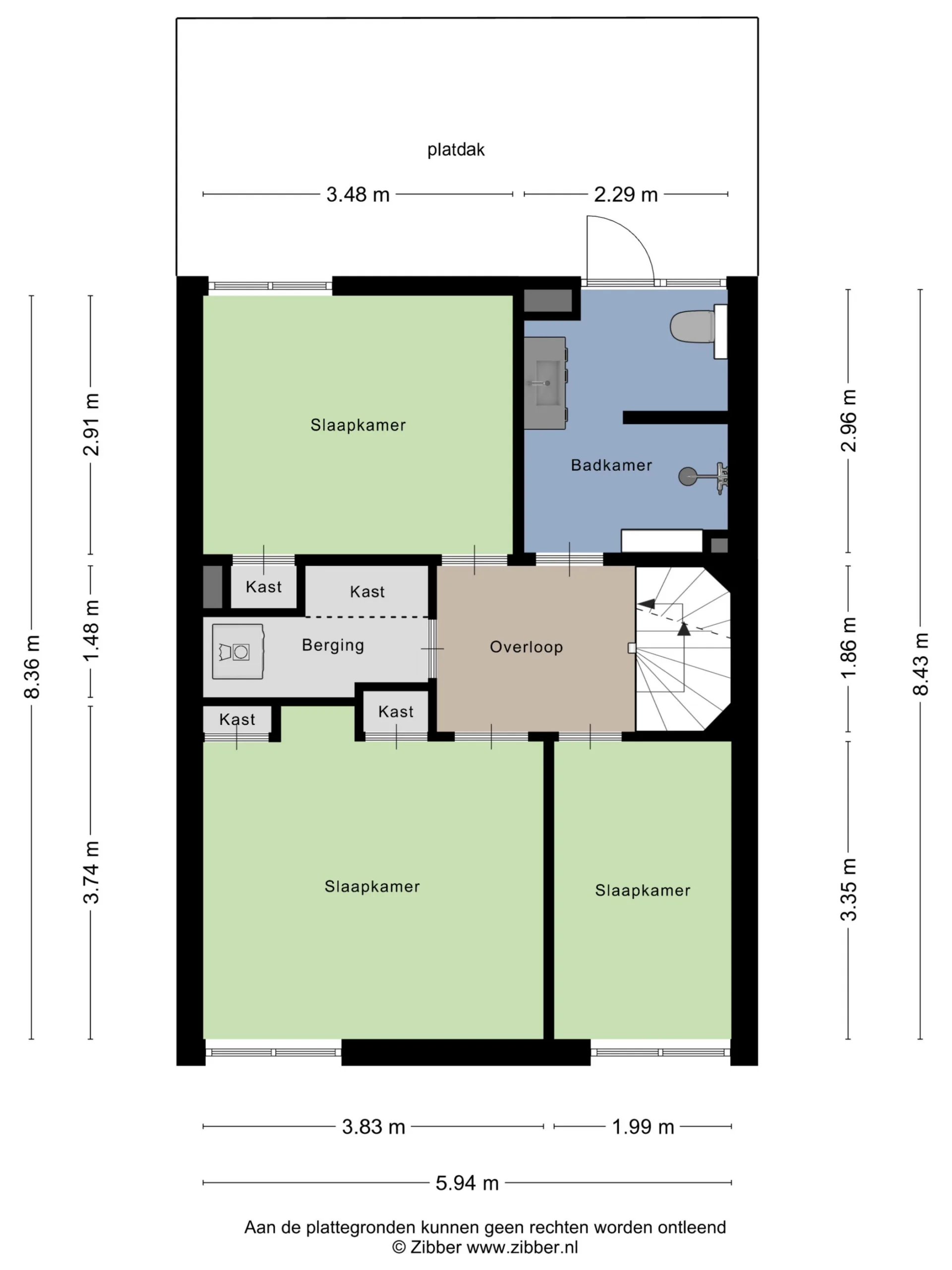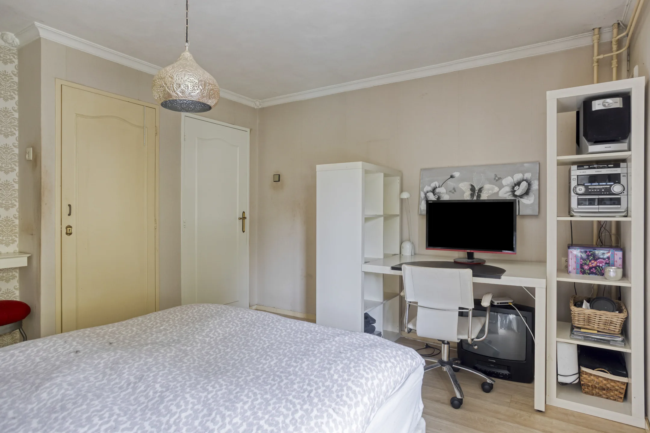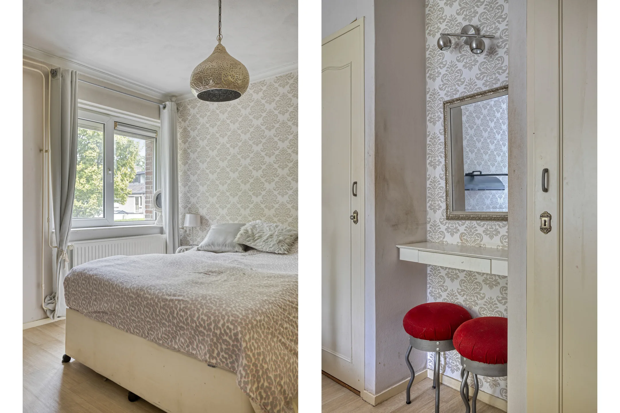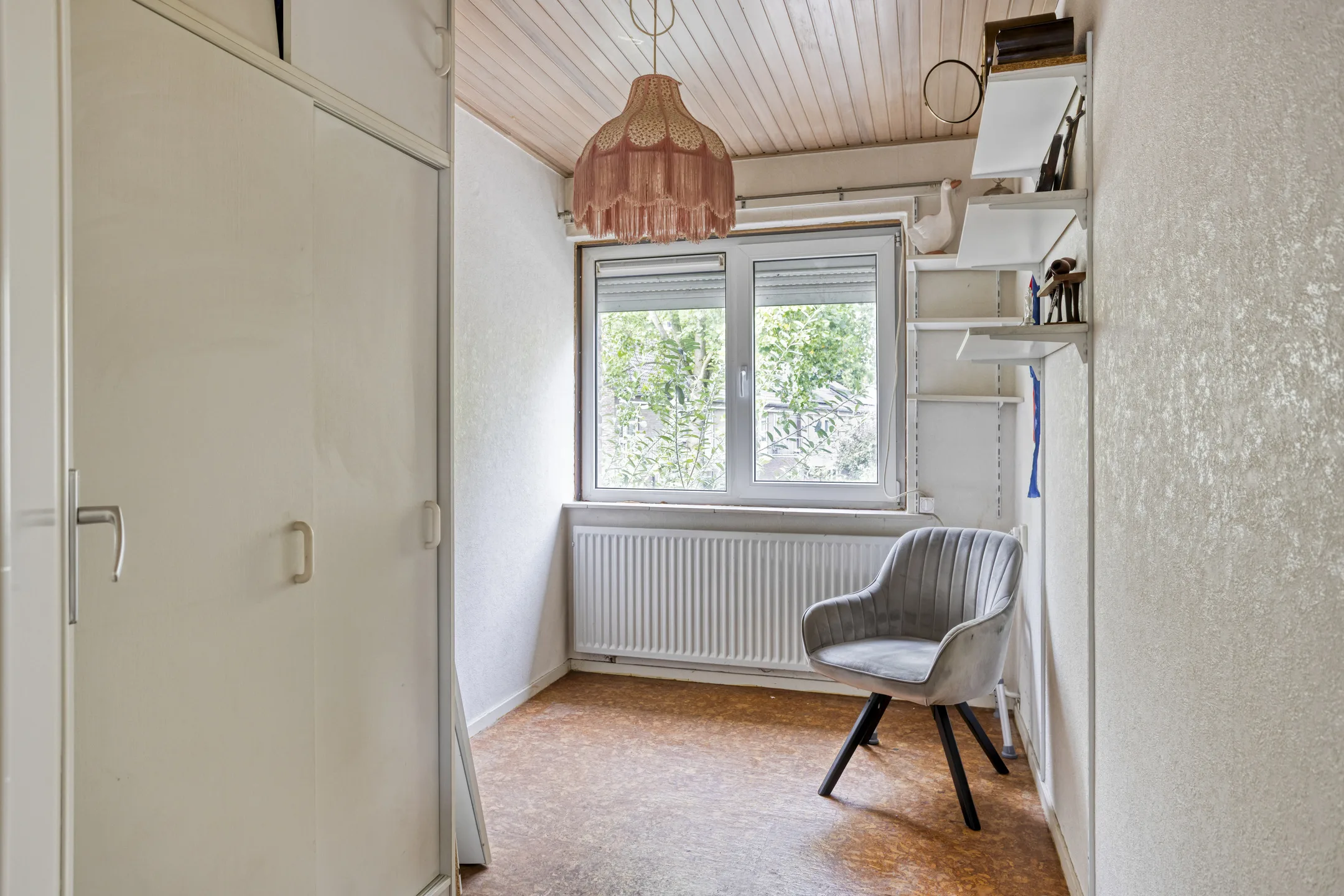 Slaapkamers: Slaapkamer 1 met extra inbouwkast ligt aan de achterzijde en krijgt de ochtendzon. Afwerking met stucwerk en laminaatvloer. Slaapkamer 2 aan de voorzijde met eveneens twee inbouwkasten, behangen wanden en vloer met zeilbedekking. De derde slaapkamer is ideaal als berg- of computerkamer te gebruiken en is afgewerkt met behangen wanden en kurkvloer.