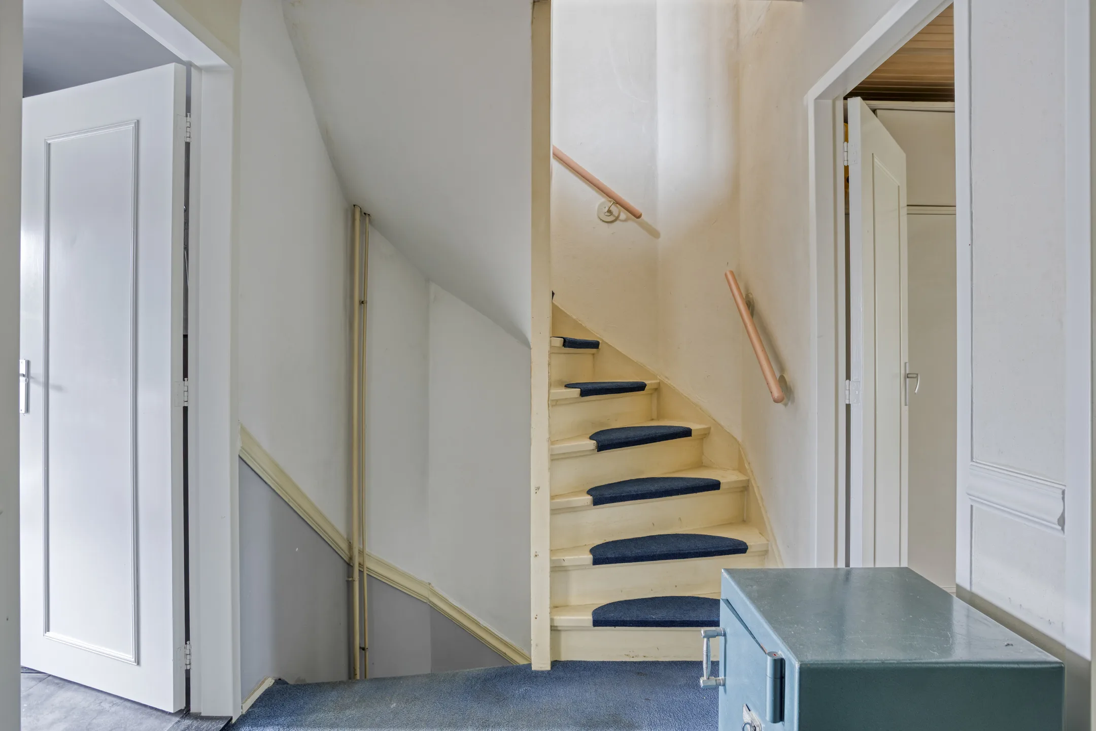 Overloop met toegang tot drie slaapkamers, badkamer en wasruimte.