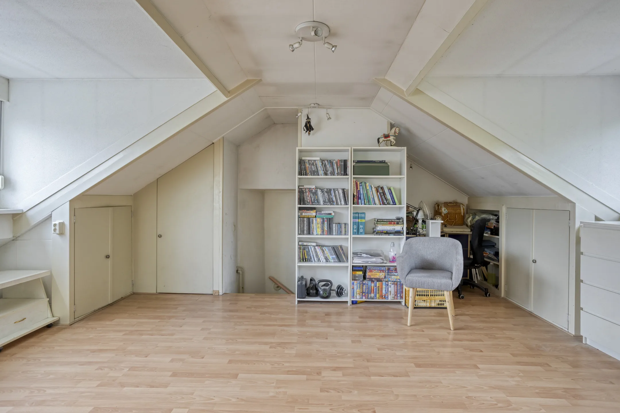Zolder: Via een vaste trap bereikbare zeer ruime zolderverdieping. De ruimte is heerlijk licht en ruimtelijk opgezet door de twee dakkapellen die op beide dakvlakken zijn geplaatst. De dakkapellen zijn van kunststof met draai/kiepramen en hand bedienbare rolluiken. Het dak is hier van binnenuit geïsoleerd en afgewerkt met stucplaten. Opstelling HR ketel (AWB 2009) en praktische bergruimte onder de kapschuinte.