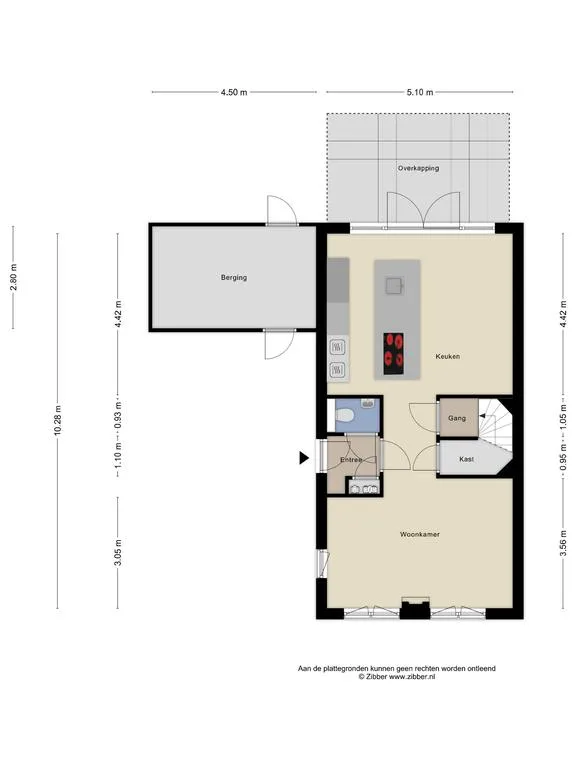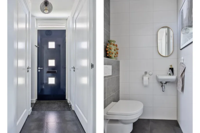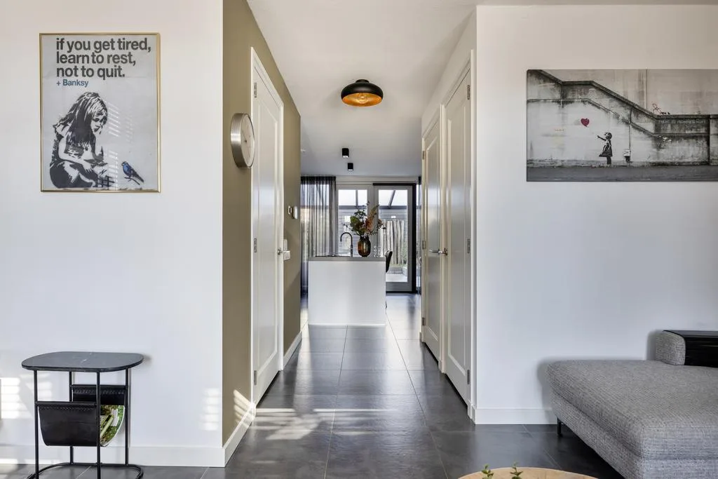 Open verbinding naar de woonkeuken, deur met trapopgang naar de eerste verdieping en royale trapkast met veel bergruimte.