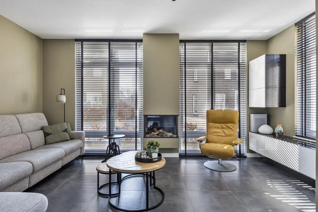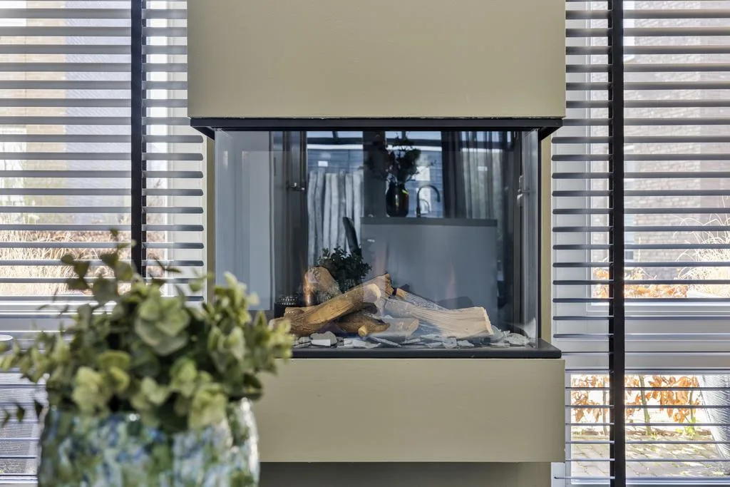 Living: Sfeervolle living aan de voorzijde met fijne uitkijk richting het plantsoen. Door de zonnige lichtinval is dit een heerlijke verblijfsruimte. De centraal gesitueerde gashaard staat garant voor veel gezelligheid.