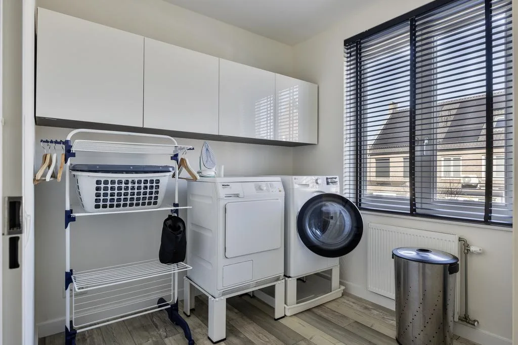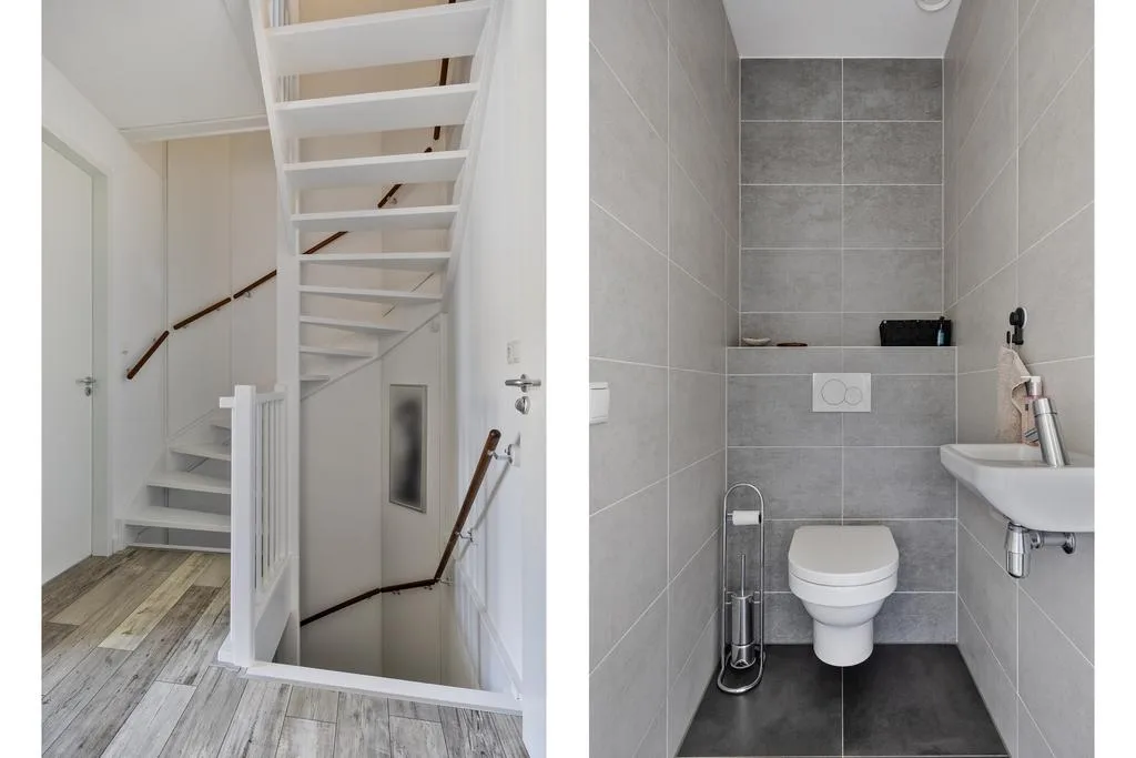 Afwerking met laminaatvloer en strakke wandafwerking.