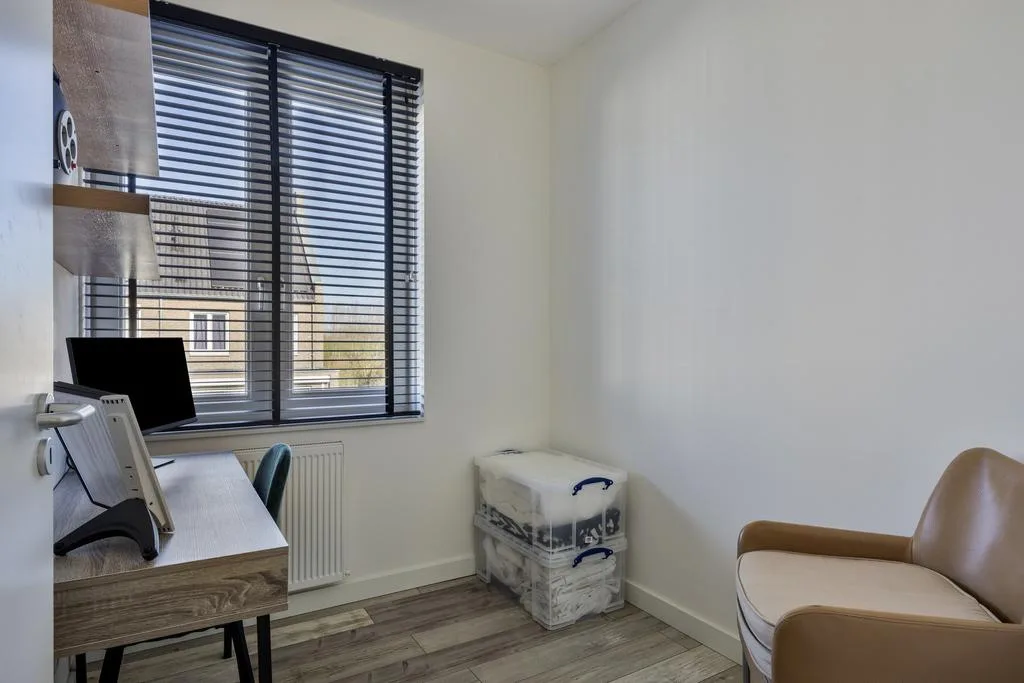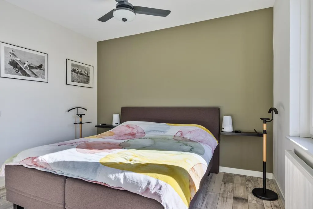 De wanden zijn strak afgewerkt, plafonds voorzien van spuitwerk en de vloer is bedekt met moderne laminaat.