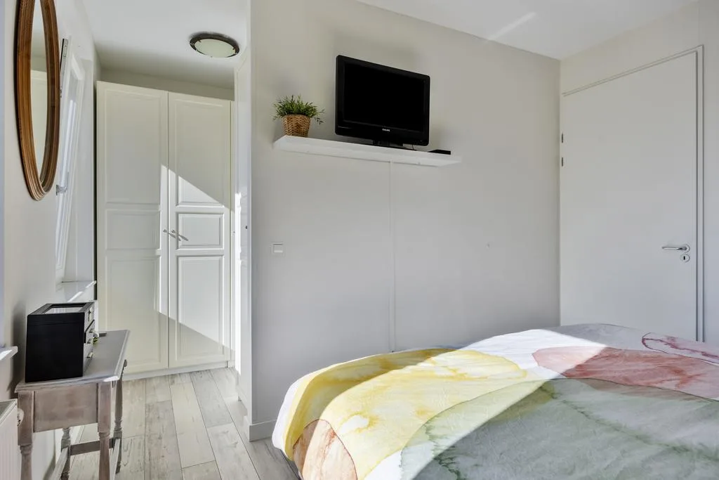 Royale slaapkamer 5 met eveneens bergruimte onder de kapschuinte.