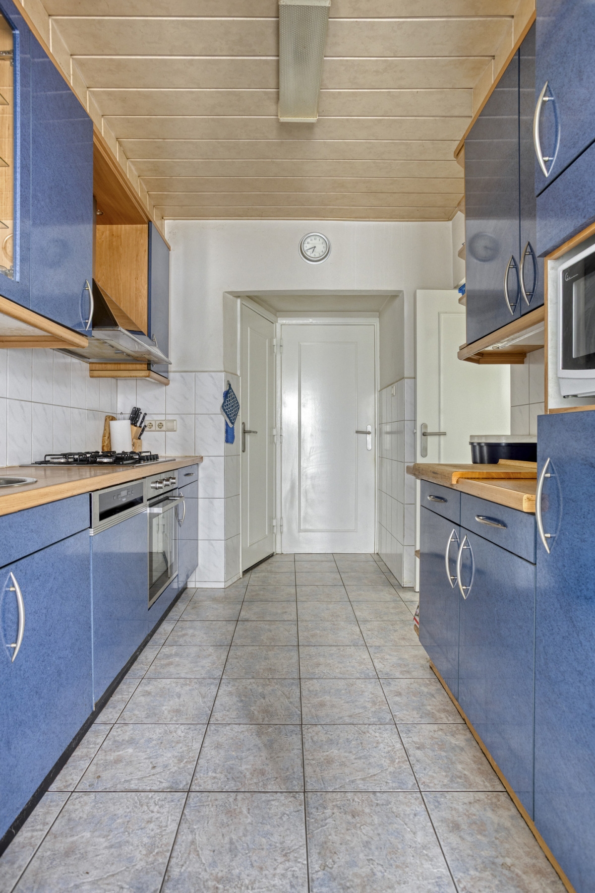 Keuken: Gesloten keuken met dubbele kunststof keukeninrichting met voldoende bergruimte en plavuizen vloer. De keuken is desgewenst eenvoudig open te werken richting de woonkamer en de uitbouw voor een meer ruimtelijke indeling. Verdiepte kelderkast met moderne metervoorzieningen.