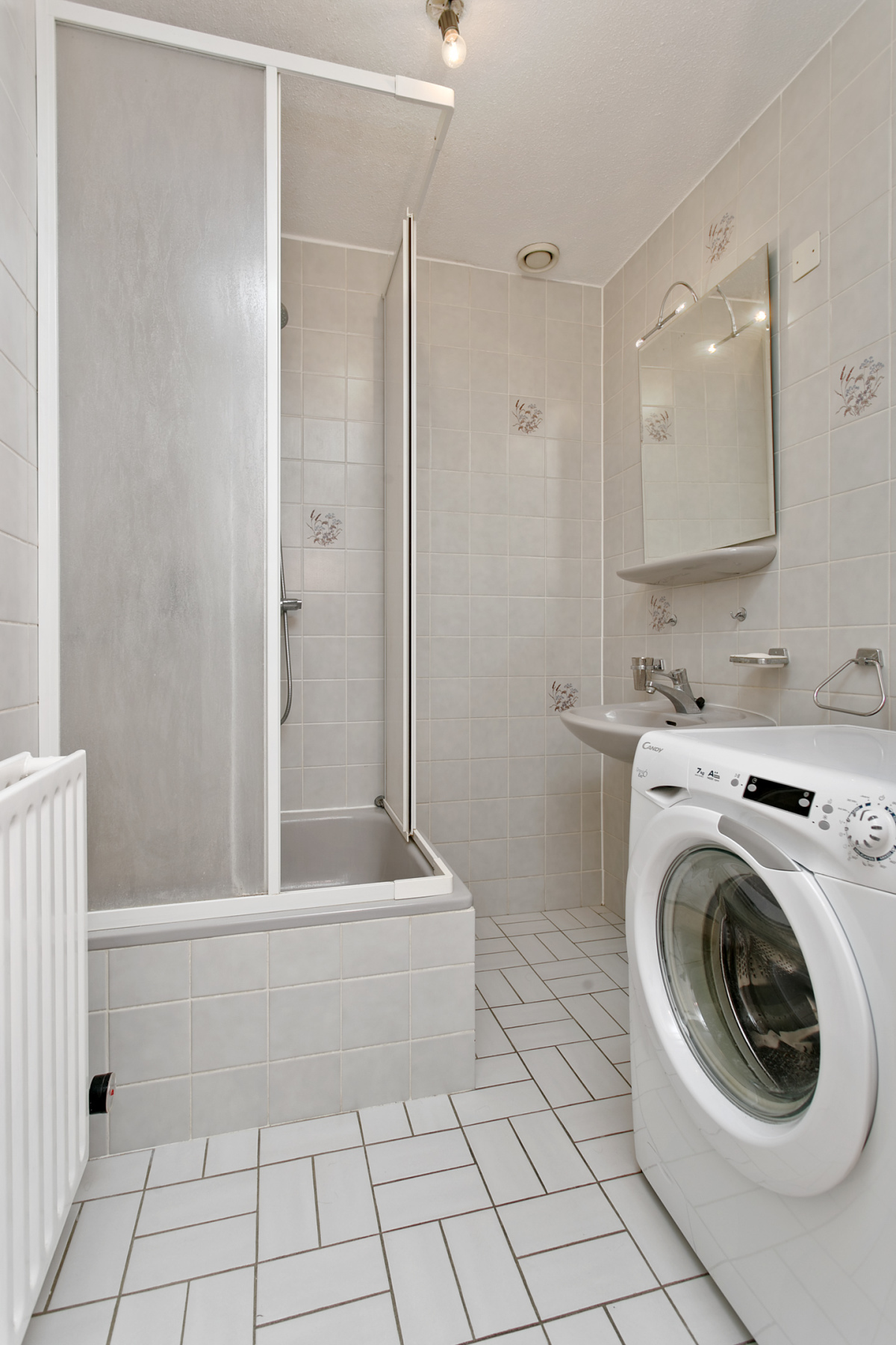 Badkamer: Nette geheel betegelde badkamer. De badkamer is voorzien van een douchecabine, vaste wastafel en aansluiting voor de wasapparatuur.